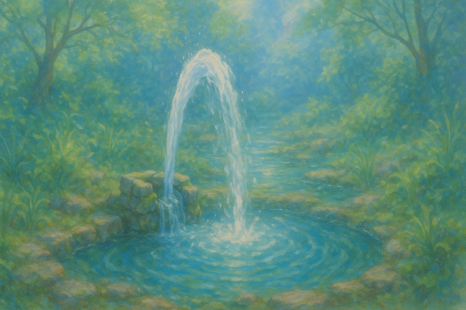 샘물은 생명력과 새로운 시작을 의미합니다.